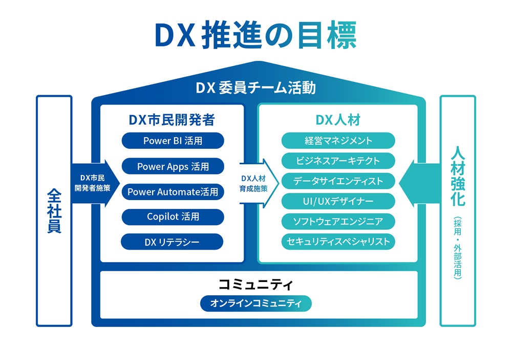 DXの推進は単なる技術革新にとどまらず、組織力の強化にも重要な役割を果たします。私たちは人的資本への投資を積極的に進め、デジタル技術に精通した人材の育成を加速させています。​​