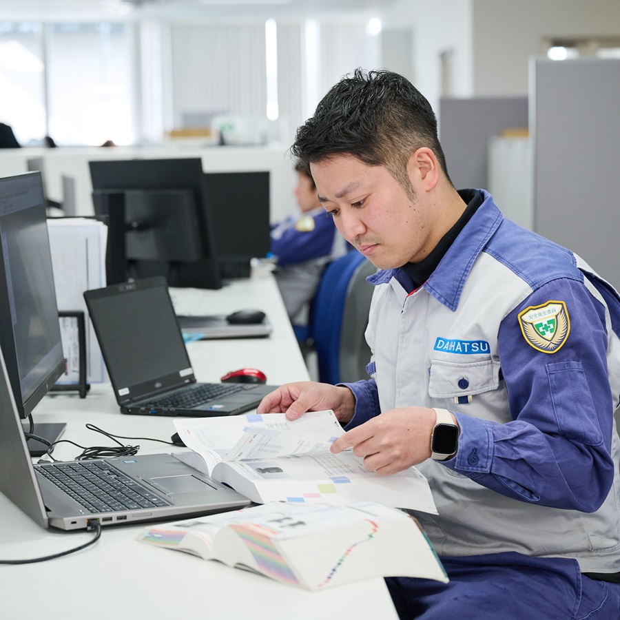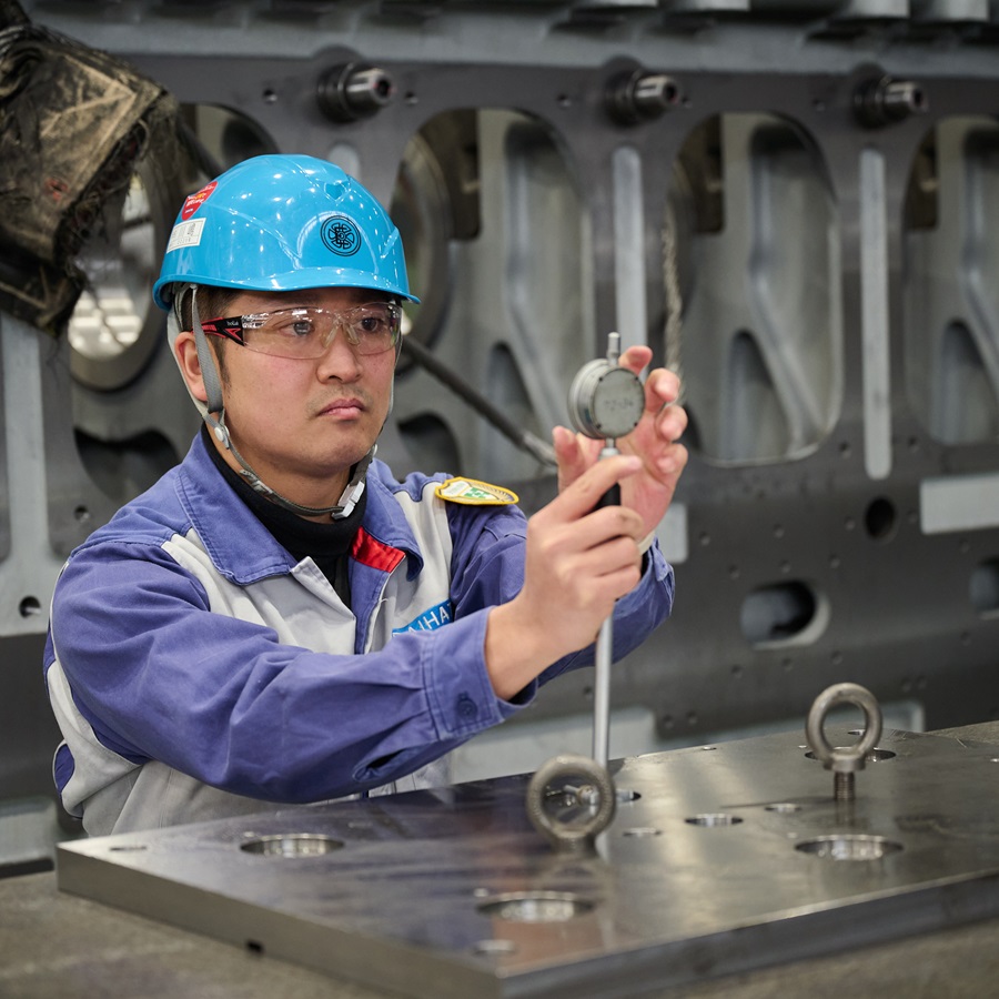 子どもの頃からモノづくりが好きで、大学では機械工学を専攻。在学中は燃焼工学の研究に取り組んだこともあり、卒業後は関連する仕事がしたいと考えていました。そして、すぐに頭に浮かんだのがエンジン。それからいろいろなエンジンメーカーを調べる中でダイハツインフィニアースと出会いました。それから工場見学をさせてもらった際に船のエンジンの大きさに驚き、俄然興味が湧いてきて「この会社で働きたい」と思いました。