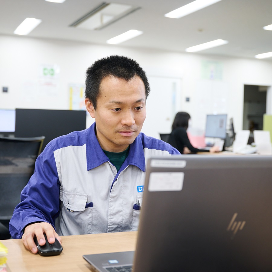 担当する業務に対して、いつも責任感を持って取り組んでいます。物怖じせず、必要なことは誰に対しても率直に発言していて、その仕事のスタンスは尊敬しています。一方、プライベートでは気さくな性格で、昼休憩の彼との雑談時には笑いが絶えることは有りません。公私ともに、関わりたいと思える人物です。