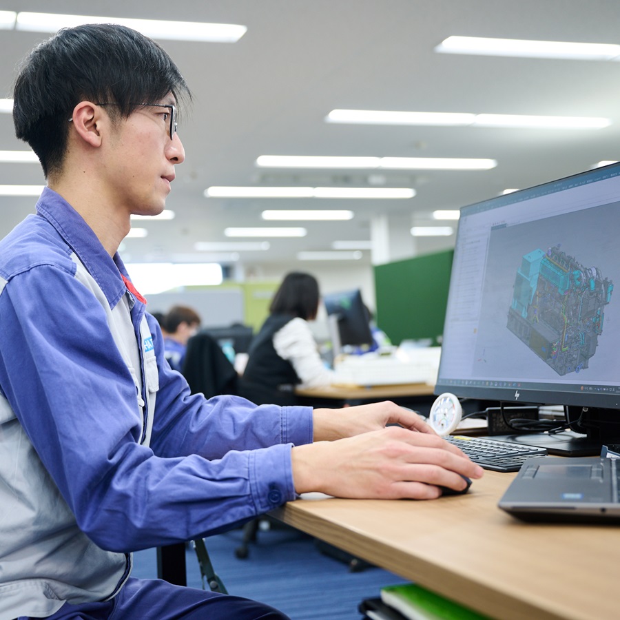 試作機から納品をするエンジンまで、実機を確認品型、関連する部署と協力し、設計を行います