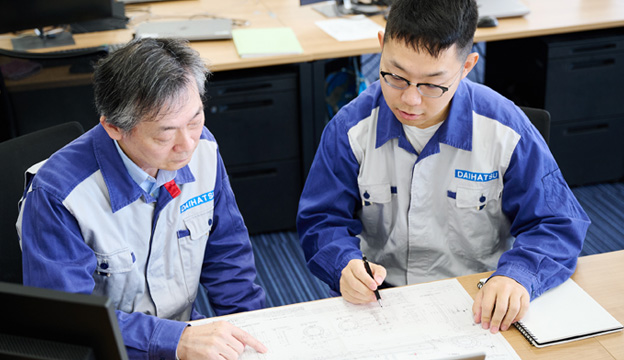 設計パーツに関する相談や試運転のチェックなど、現場との連携を行います