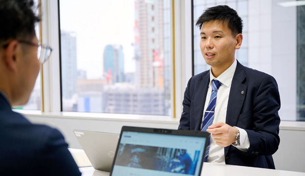 私は国内の船舶用エンジンの営業を担当していて、造船所や船主といったお客様にディーゼルエンジンなどを販売しています。最初のきっかけとしてはお客様からお話をいただくこともあれば、こちらから提案する場合、あるいは新規開拓をする場合などさまざまなケースがありますが、いずれの場合も技術部門と協力してお客様のニーズに応じた計画や製品を提案して受注を目指します。