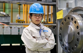 地元姫路の工業高校に進学し、機械工学科でさまざまな機械にふれ、鉄を削ったり溶接したり実作業を経験。モノづくりの考え方や技術を学びました。就職先に当社を選んだのは、高さが3、4mもある船舶用ディーゼルエンジンを組み立てていて、やりがいがありそうだと感じたから。現在は製造グループに籍を置き、組立係の業務についています。
